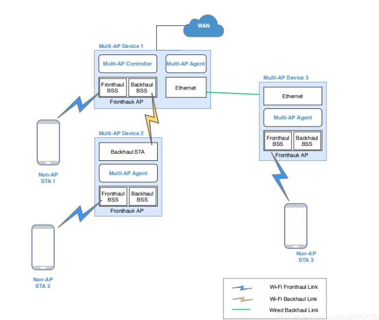 EasyMesh组网的简单理解就是传统的AP Clinet模式 加上一定规则的wifi ssid和密码自动配置功能的网络组成。