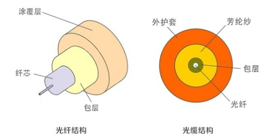 光纤裸纤一般分为三层:纤芯、包层和涂覆层。
