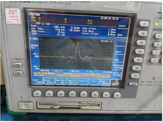 而我们在测试发射器件tosa时通常会涉及到一个参数SMSR(Side-Mode Suppression Ratio)边模抑制比 ,主模强度和边模强度的最大值之比称为边模抑制比,是标志纵模性能的一个重要指标。一般测量边模抑制比时,需要配合光谱分析仪中marker和analysis使用。用maker来标识主波峰值和最高副波峰。读取两波峰值。边模抑制比为两峰之间的能级差。可通过analysis中的子选项进行计算。