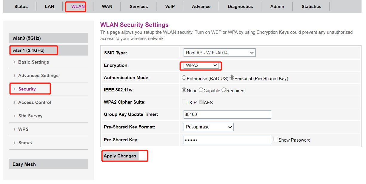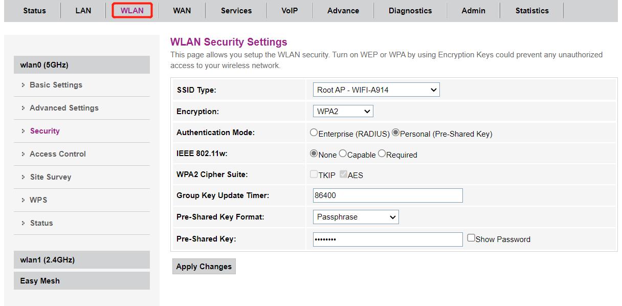 Realtek AP的配置页面的默认IP地址为192.168.1.1。通过以太网电缆连接设备,输入IP访问并进入wifi配置页面,如下图:
