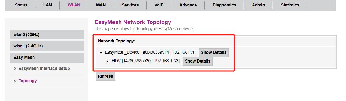 Easymesh组网成功后mesh网络拓扑图显示如下: